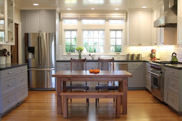 5/ Không giống như khi lựa chọn màu sắc bên phòng khách hay phòng ngủ, trong nhà bếp, bạn không cần phải tránh xa màu đen, nâu, xanh đậm có thể làm cho căn phòng trông nhỏ đi mà chọn một màu tối cho nhà bếp của bạn thực sự có thể giúp ẩn các vết bẩn từ nước trái cây, nước sốt, mỡ trong khi nấu ăn và các dấu hiệu xảy ra trong quá trình nấu ăn, ngoài vết bẩn khó coi, giữa bếp và lò nướng, tường nhà bếp và tủ của bạn có thể được tiếp xúc với nhiệt độ cao có khả năng làm cong tủ, bong vỏ sơn, hoặc thậm chí gây ra vết cháy trên các bức tường.